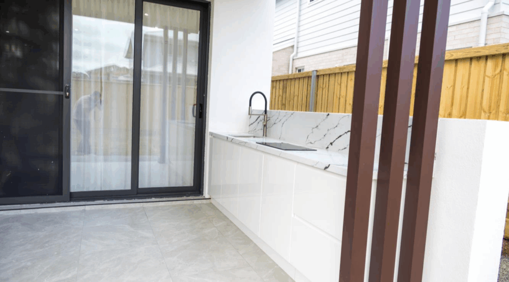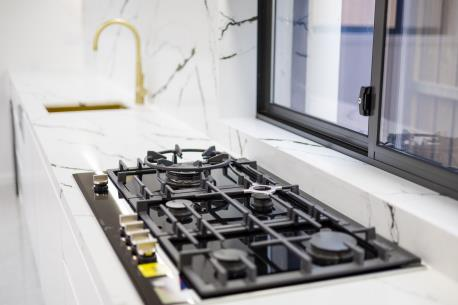 40mm engineered stone benchtops and waterfall model island from builder’s range.